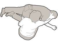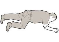 Okrenite onesviještenog povlačeći ga za rame i za bok ili natkoljenicu.