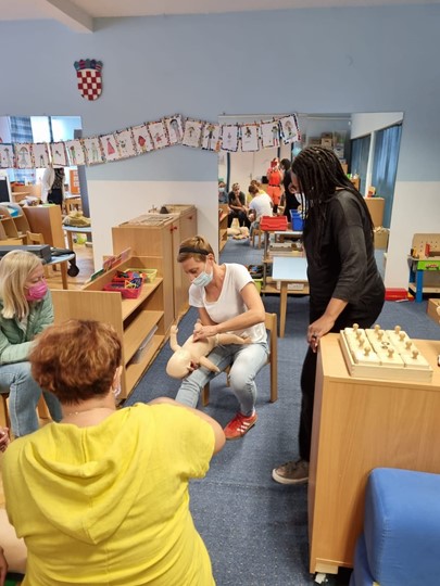 Na edukaciji se simulira oživljavanje pacijenata kroz korištenje suvremene medicinske opreme – lutki i uređaja za reanimaciju – edukacijskih AED-ova nabavljenih iz spomenutog projekta.
