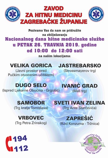 Pozivamo Vas da nam se pridružite na obilježavanju Nacionalnog dana hitne medicinske službe, u petak 26. travnja 2019. godine od 10:00 do 12:00 sati, na našim lokacijama:
